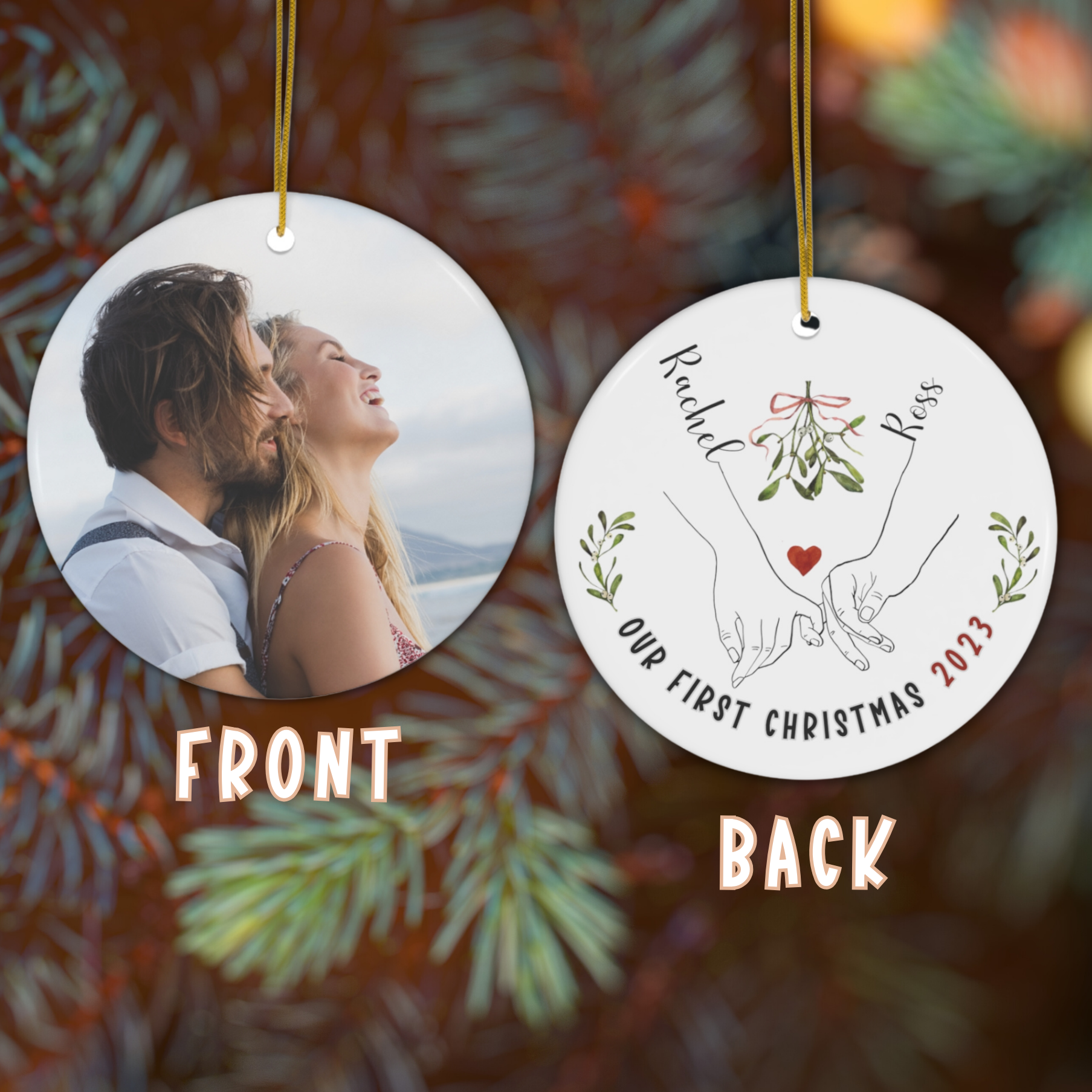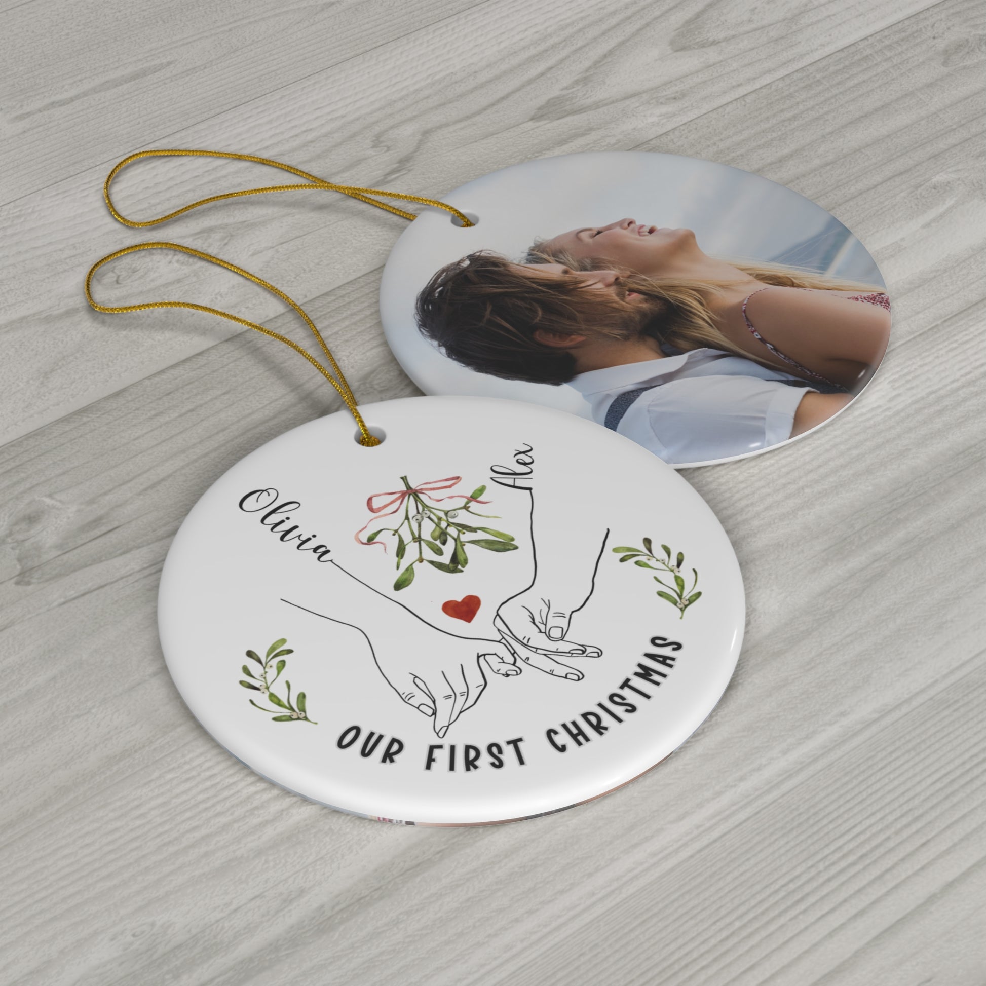 Two-Sided Love Ornament - Married, Engaged, Dating Couple Christmas Gift with Pinky Promise & Personal Photo, Ceramic